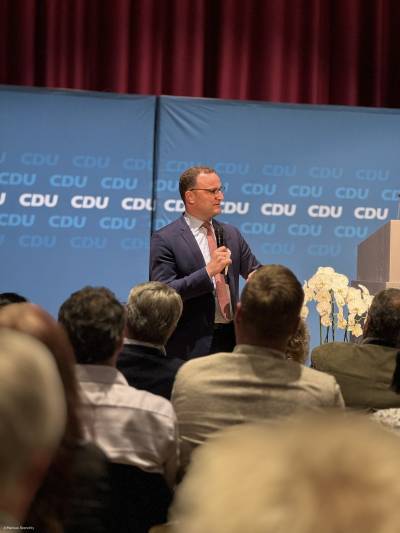 Herr Spahn zeigte, dass er ein sehr starker Politiker, aber auch ein ausgezeichneter Redner ist. Ernst, aber auch belebend, hielt er seine Rede und beantwortete die im Anschluss durch das Publikum gestellten Fragen.